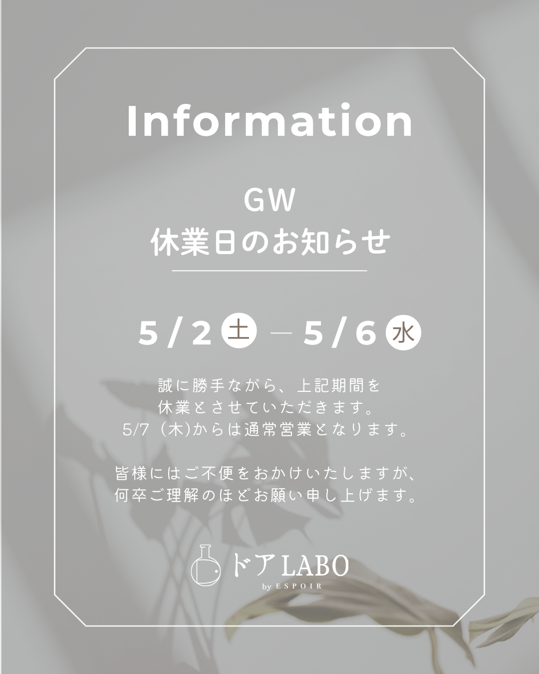GW休業日のお知らせ