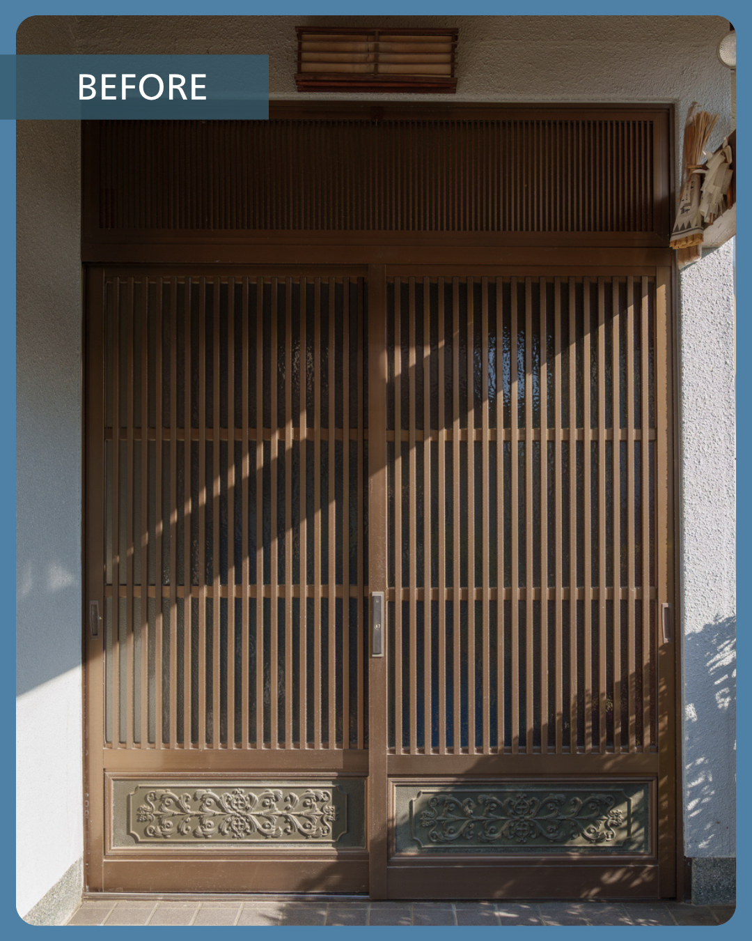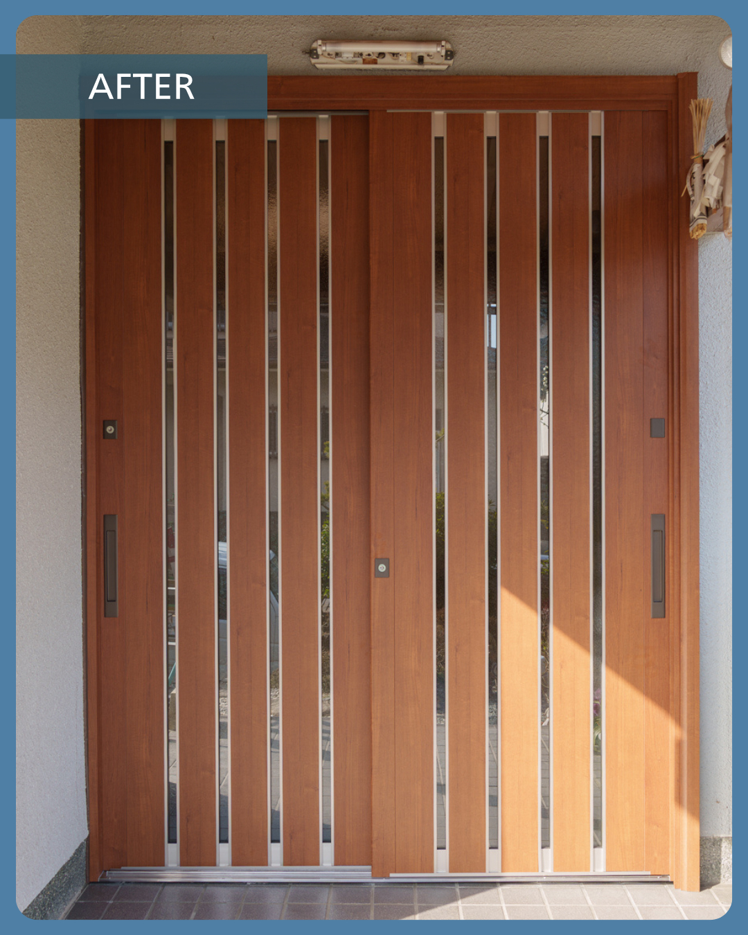 昔ながらのランマ付きの玄関ドアから、和風モダンな現代風の玄関ドアに大変身👏