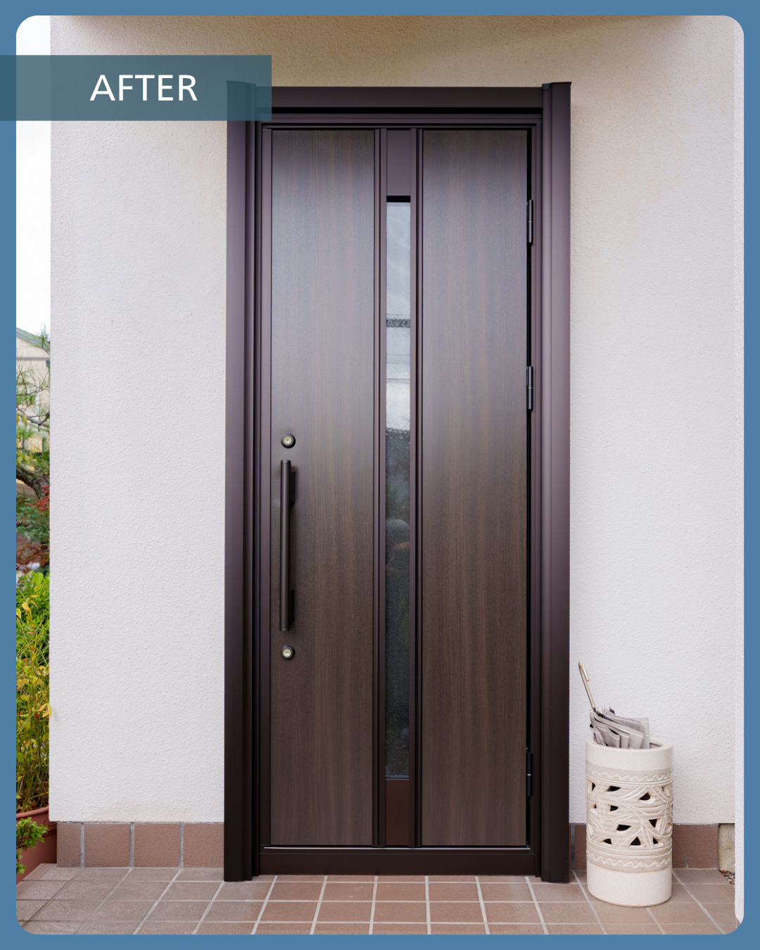 リフォーム後のスタイリッシュでおしゃれな玄関ドアは、
